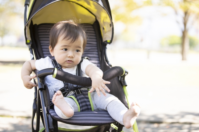 B型ベビーカーの検討開始目安は、「生後7ヶ月以降(腰がしっかりすわってから)」です。