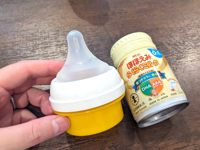 常温のまま飲ませられるので、夜間授乳や外出時は「開ける→つける→飲ませる」の3ステップで終了。数秒で準備完了です。