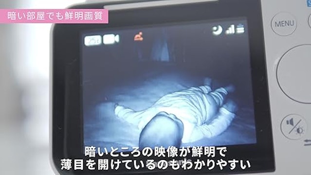泣き声に反応する機能のほかに、暗い場所でもはっきり見える暗視機能がついているため、よく見えなくて部屋まで慌てて行く心配が少なくなります。 - ここがポイント