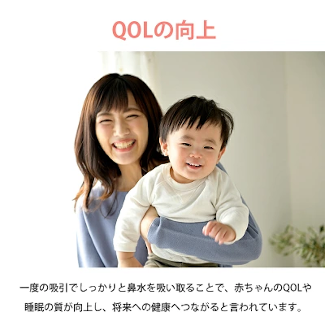 風邪の治りが早くなり、中耳炎予防にも。何より、夜中に鼻詰まりで泣く回数が激減します。0歳から幼児期まで長く使える必須アイテムです。